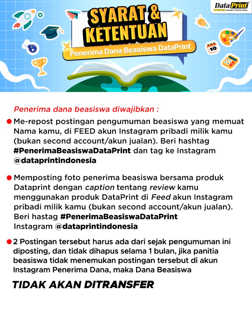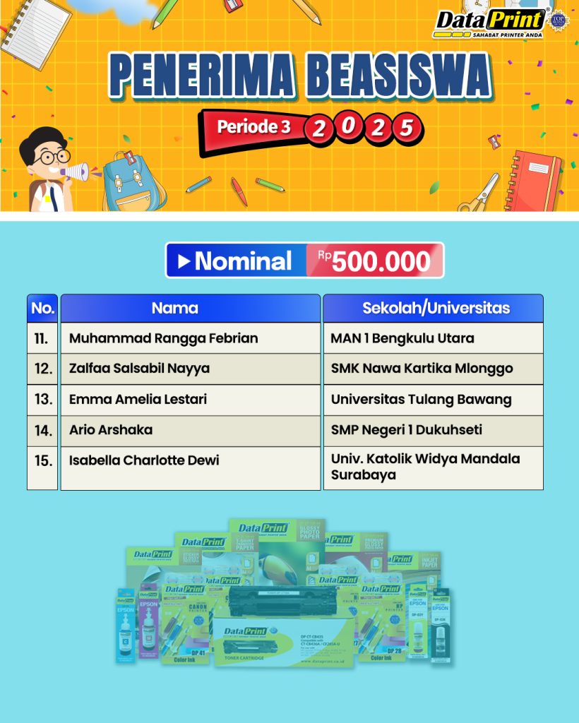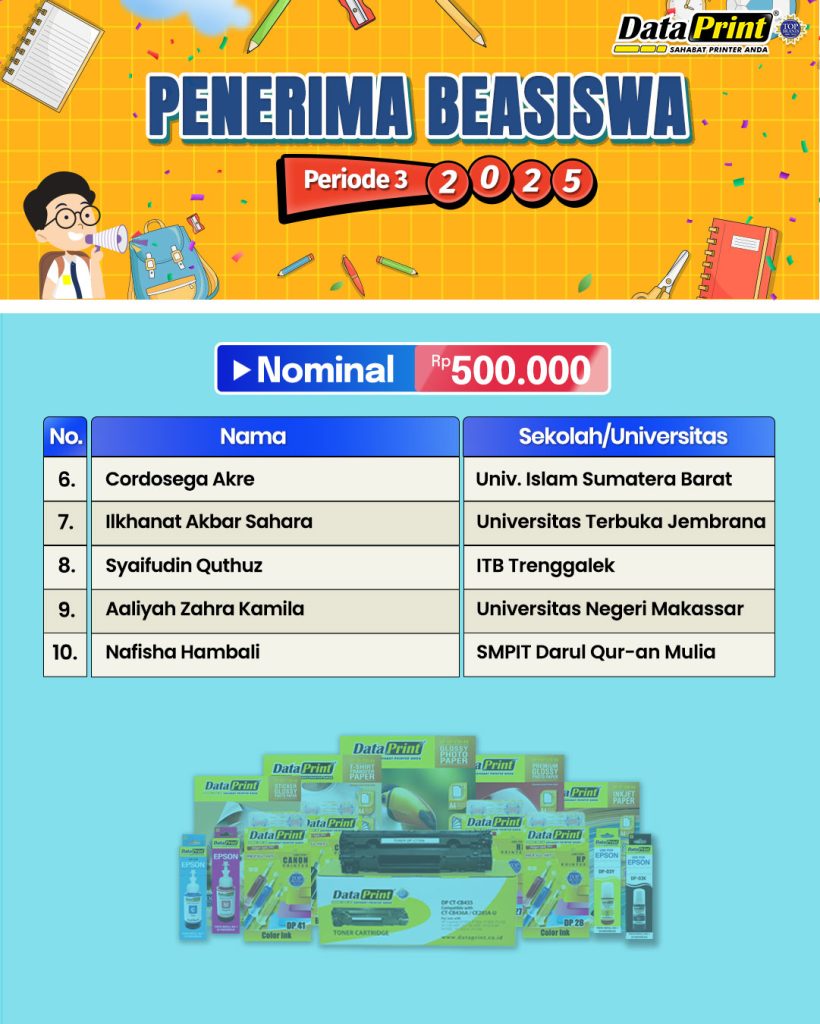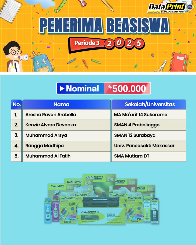 Pengumuman Penerima BEASISWA DataPrint Periode 3 tahun 2025 – nominal Rp 500.000